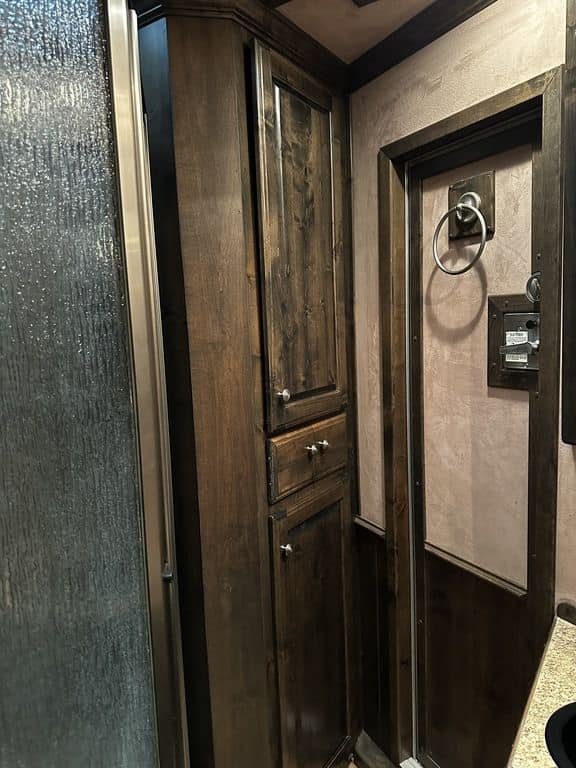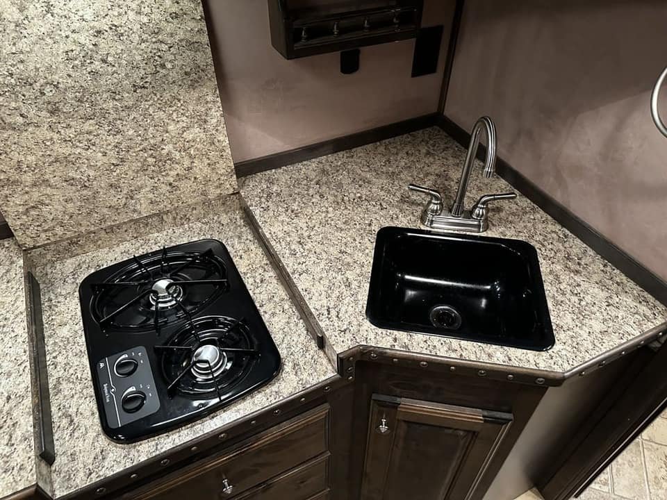 Amazing amount of storage. All wood cabinets, brand new leather upholstery, upgraded smart TV – perfect trailer size — not too big to maneuver through town, but big enough to relax and enjoy.