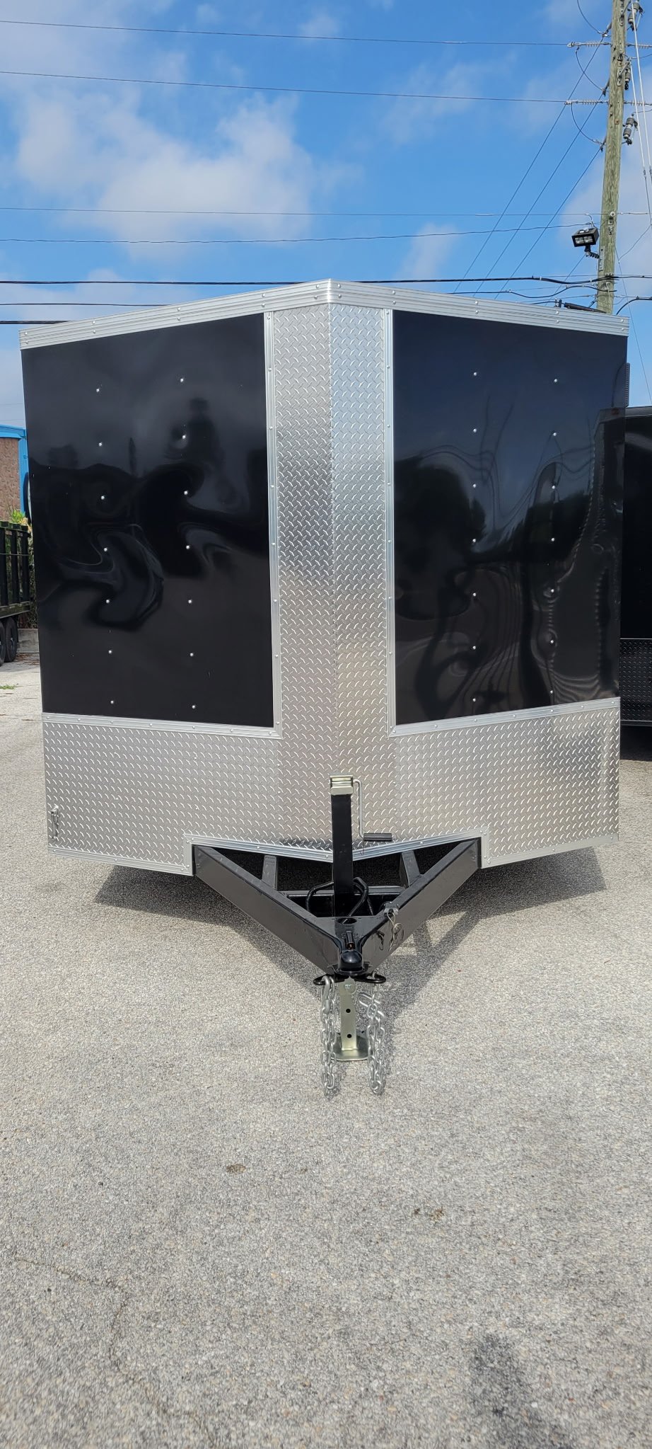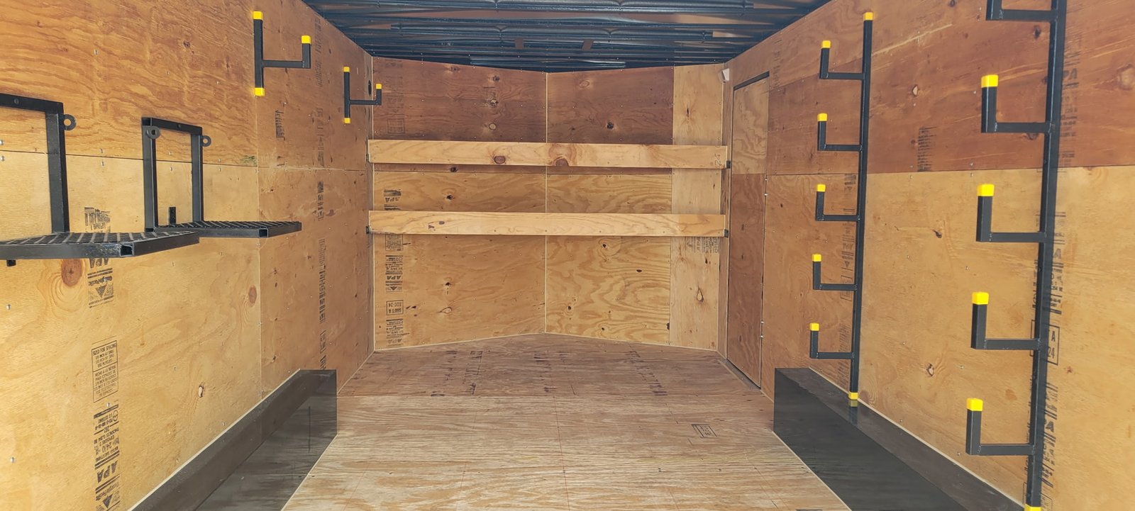 12 inch centers, dexter torsion axles, heavy duty steel side door, one piece aluminum roof, 2×1 steel supports in roof and wall, heavy duty jack. Trailer is built for abuse from lawn service companies. Not the cheap stuff you see out there.