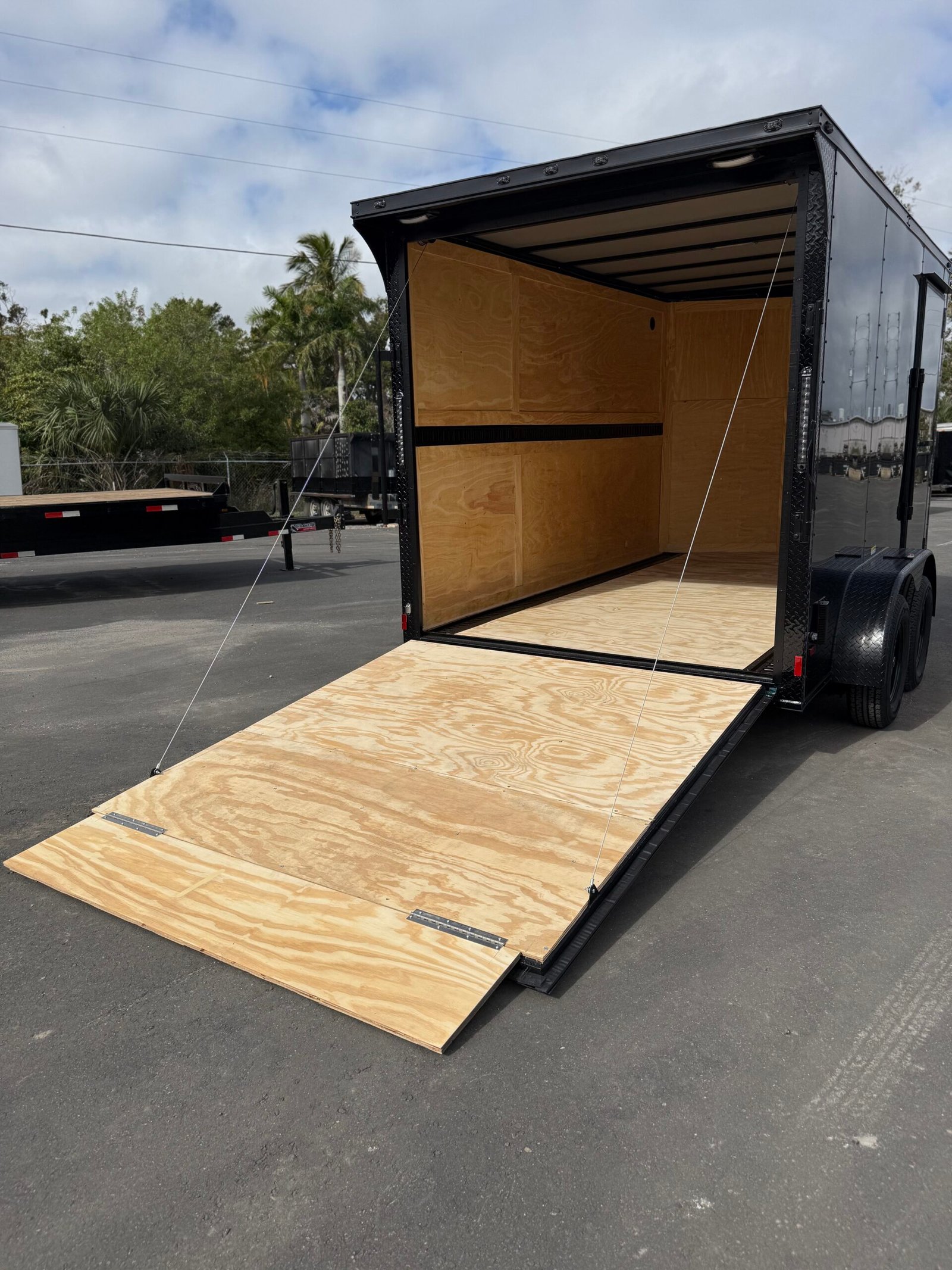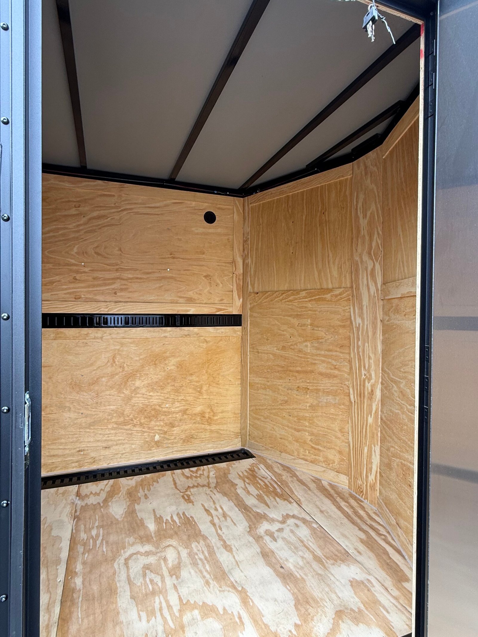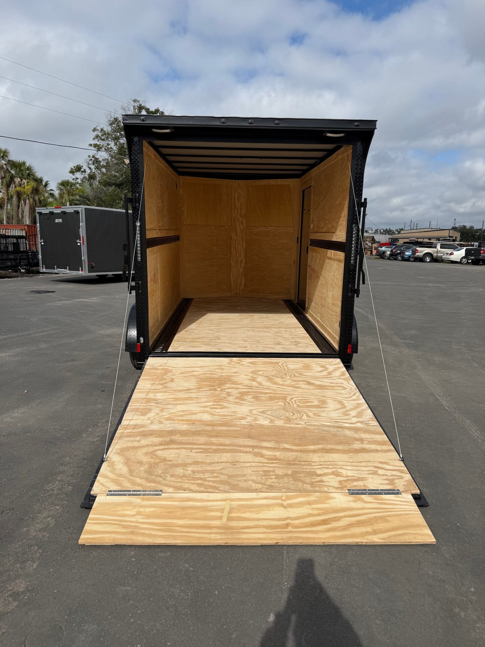 Rear spoiler w/ loading lights, rear ramp door w/ flap, e-track, interior dome light, steel frame