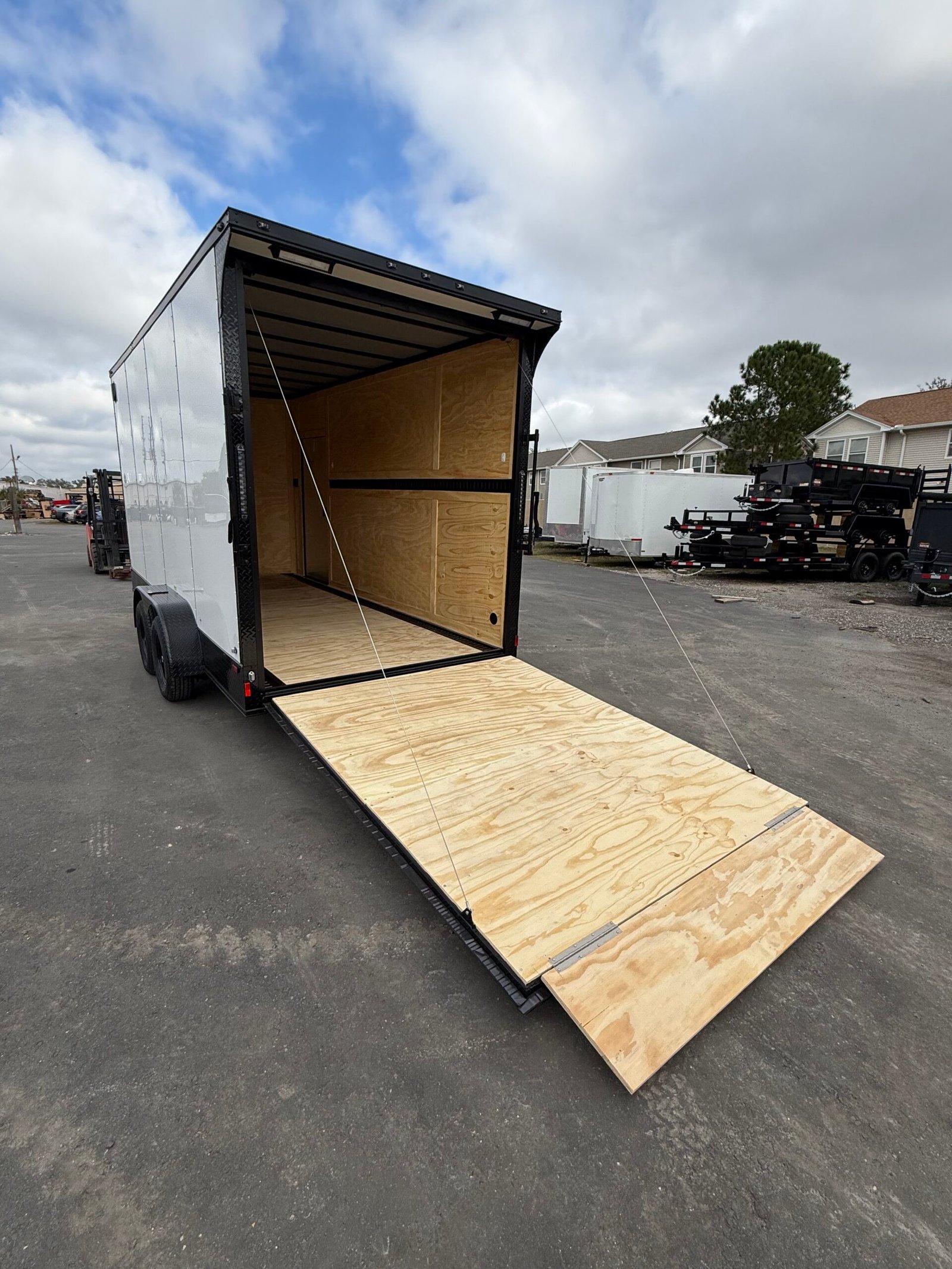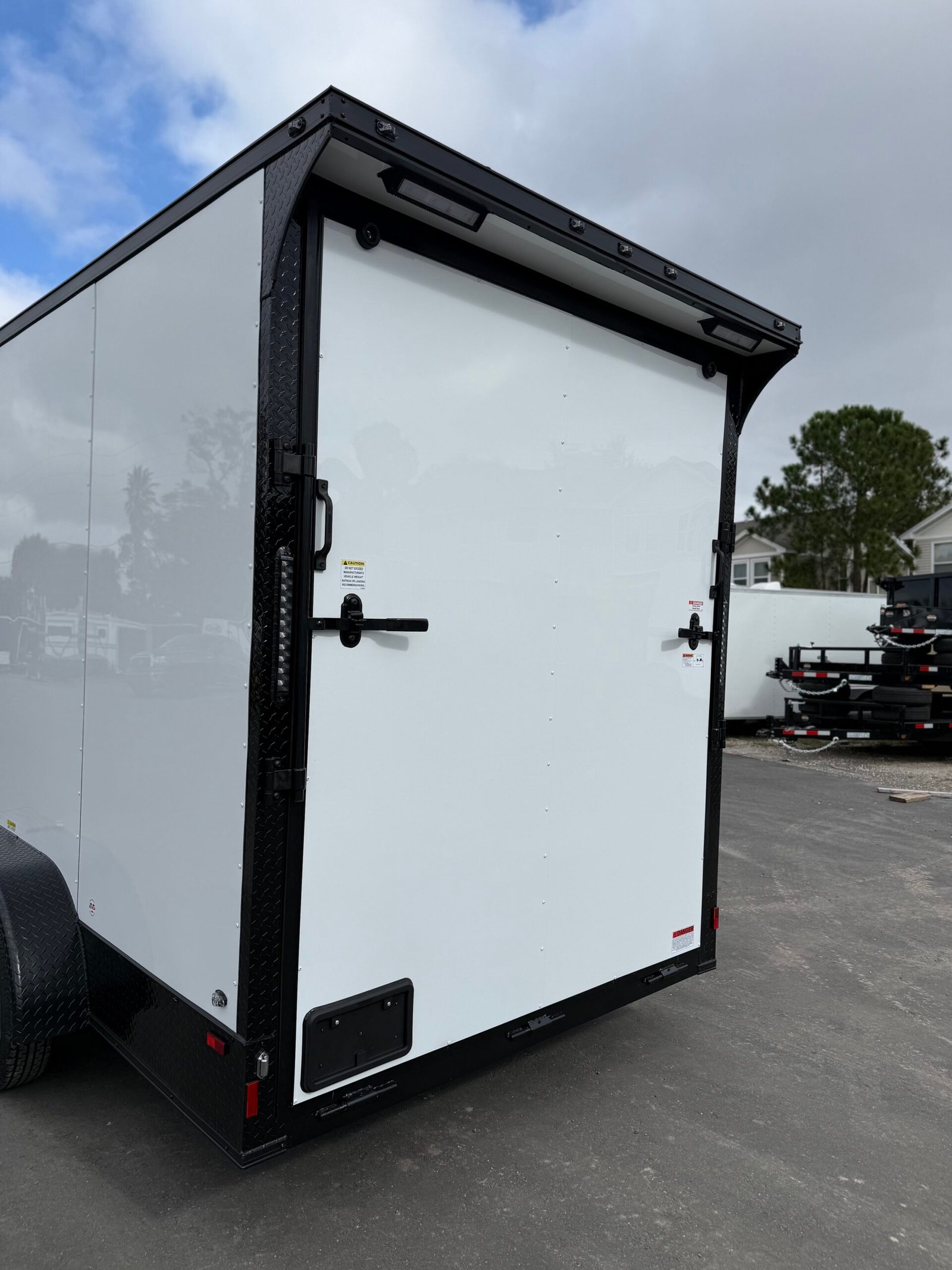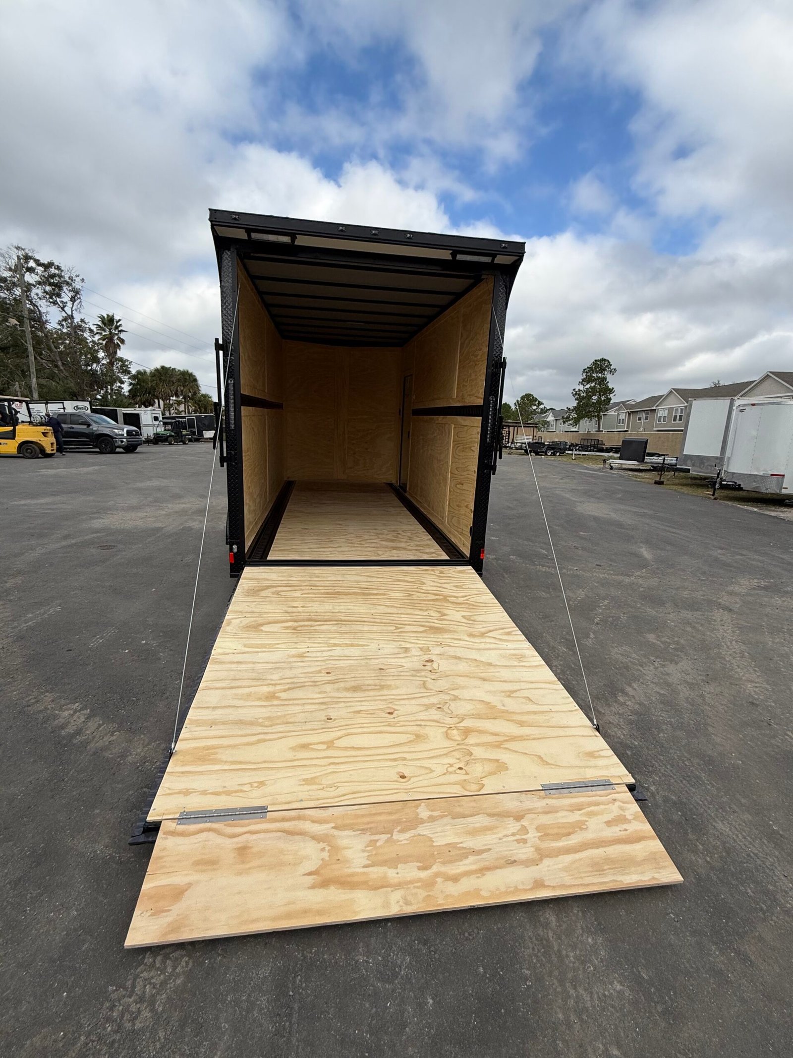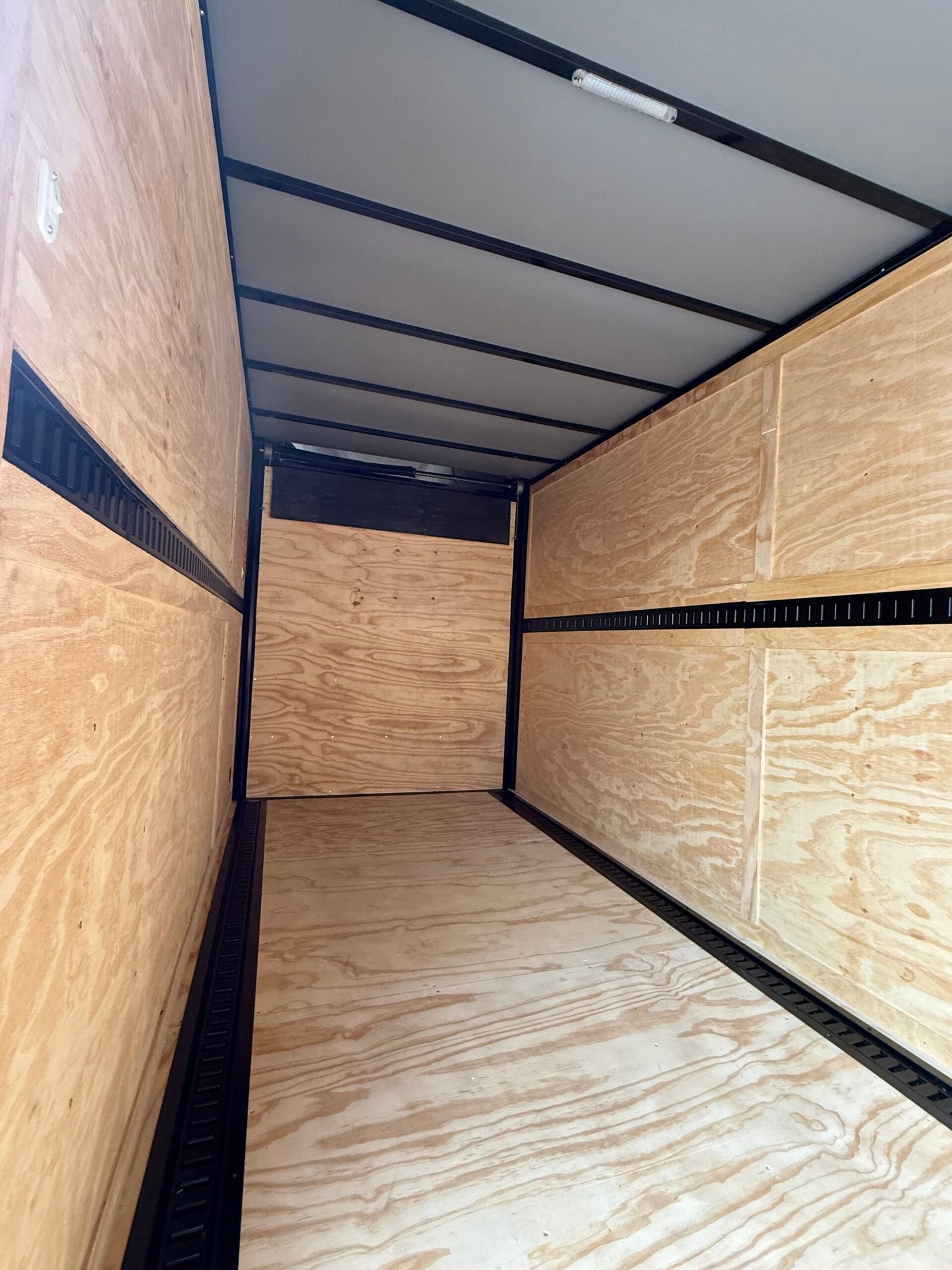 Rear spoiler w/ loading lights, rear ramp door w/ flap, e-track, interior dome light, steel frame